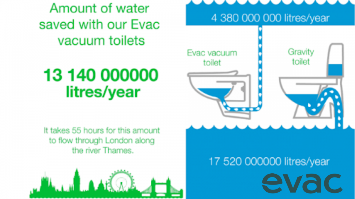 Los sistemas de recolección por vacío de la marca Evac por medio de ESVA Solutions se basan en bombas de vacío y se componen de tres elementos principales: aparatos como inodoros y lavabos, tuberías y las unidades de recogida. Las unidades de generación generan el vacío en las tuberías mediante una bomba de vacío. Cuando se descarga un inodoro, el aire atmosférico de mayor presión fluye hacia la tubería de menor presión a través del inodoro. El aire viaja a gran velocidad debido a la diferencia de presión, arrastrando consigo las aguas residuales.